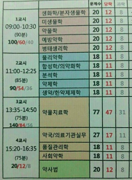 약사 국가고시는 일단 1. 과락 2. 당락으로 나뉘는데